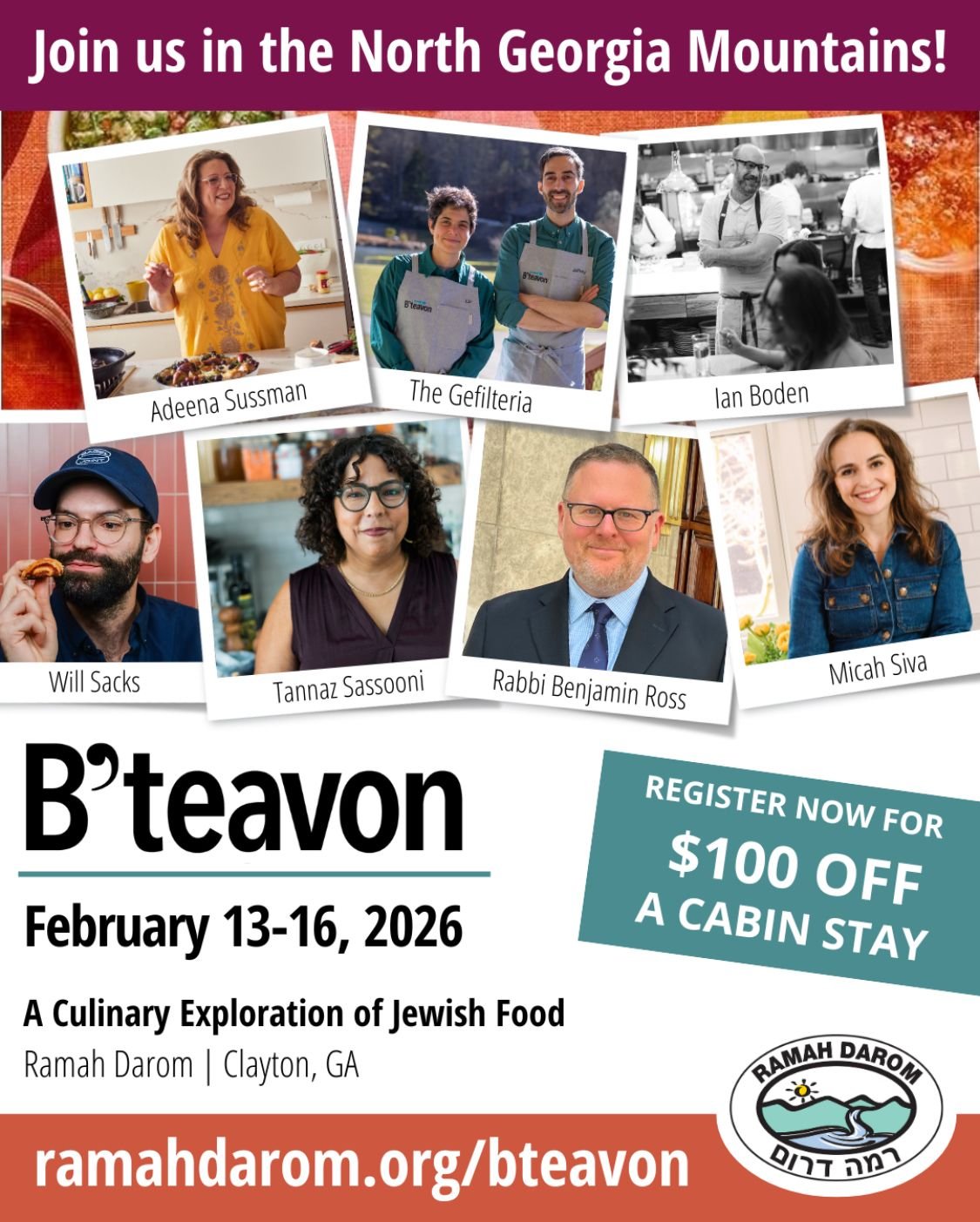 This 4-day, 3-night adult retreat features hands-on workshops, chef-led demos, tastings, and conversations with leading voices in Jewish cuisine. Explore traditions old and new, connect with fellow food enthusiasts, and discover meaningful (and delicious) ways to celebrate Jewish food culture.